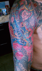 Finished the arm part, Idaten fighting oni. Alot of details for this guy. Almost killed me! Now there's only the chest to finish.